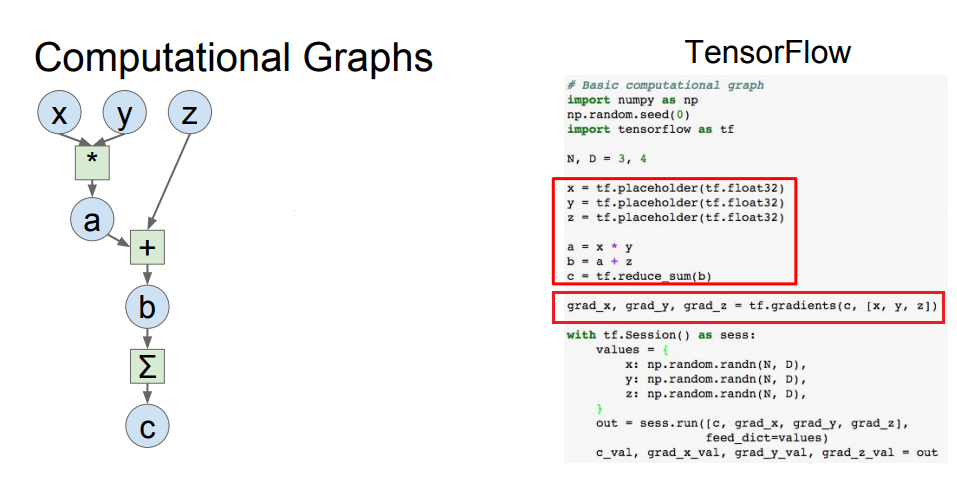 - gradients 자동으로 계산된다(forward pass만 잘 해놓으면 back prop는 자동 구성)