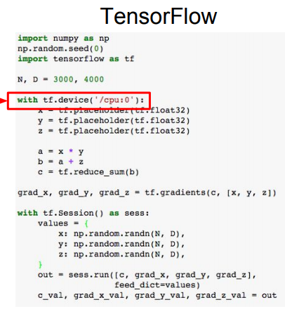 - TensorFlow는 특이하게 with tf.Sesstion() as sess: 구문을 시작으로 나뉠 수 있다.