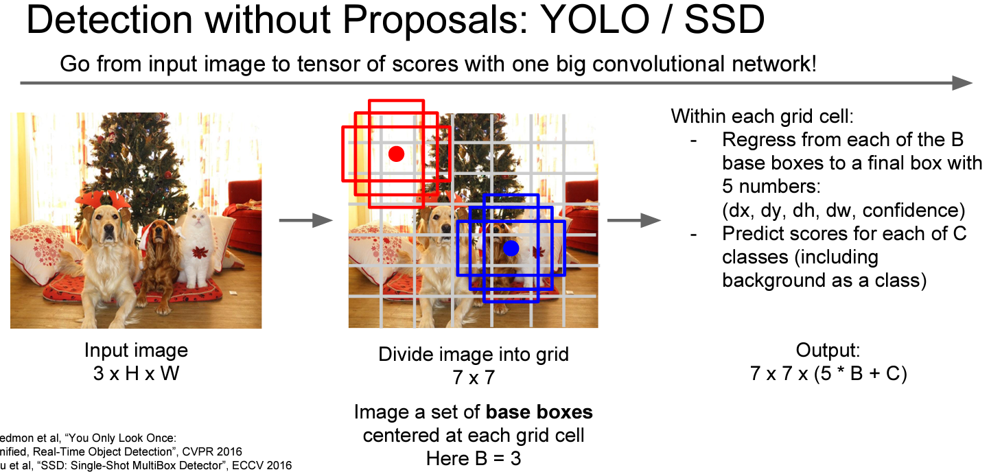 지금까지는 2-stage Detector였습니다 classificaion과 localization을 따로 했지만 Yolo와 SSD는 한 번의 forward pass로 처리합니다.