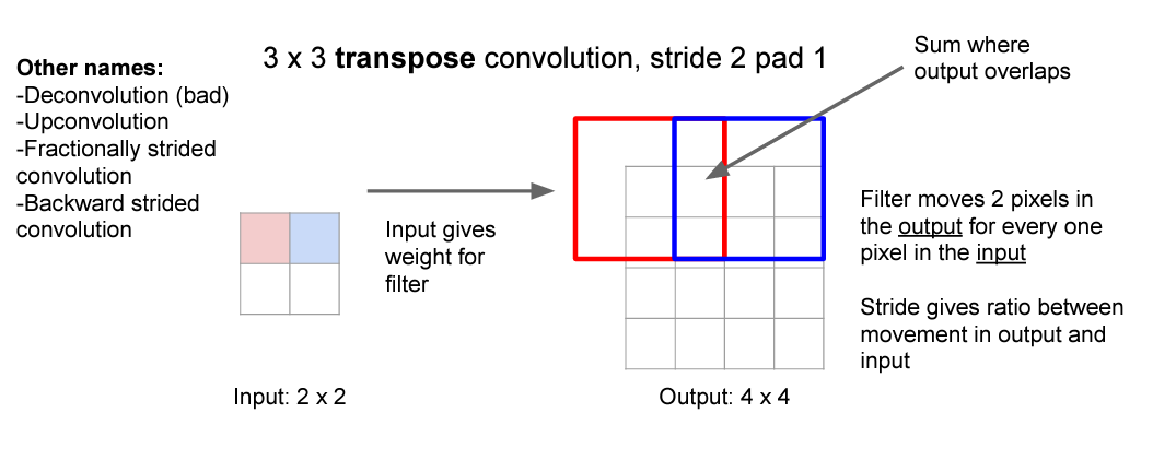 stride 2 T convolution은 이제 normal과 근본적으로 다른 연산이 되기 때문입니다.