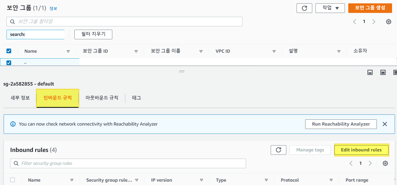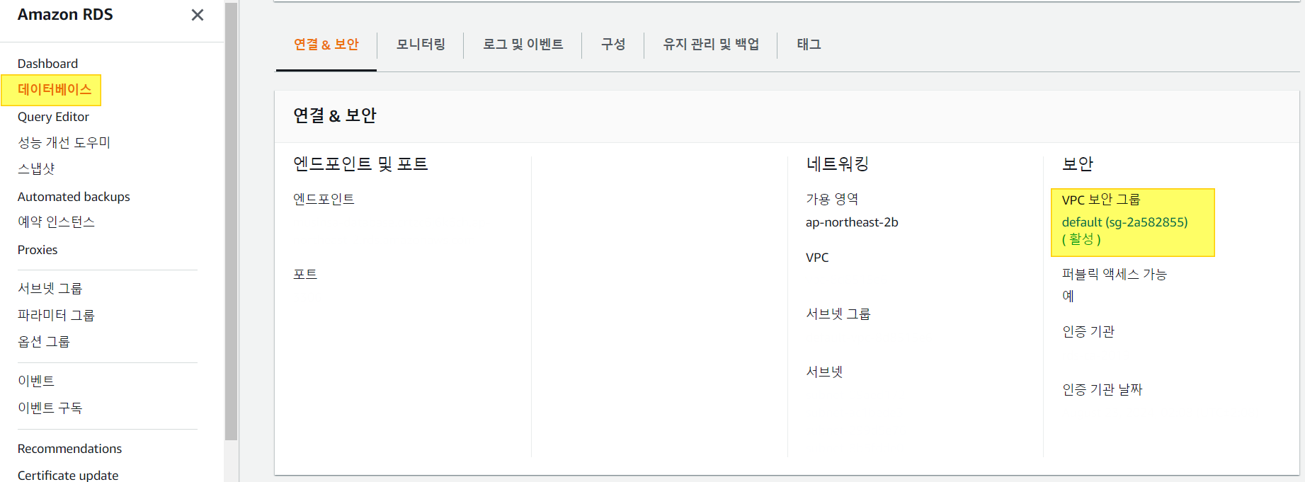RDS에 접속할 수 있는 IP를 지정하는 작업입니다. 이를 통해서 특정 IP에서 RDS에 저장된 데이터를 접근할 수 있습니다.